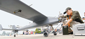 測繪隊(duì)員調(diào)試攝影無人機(jī)